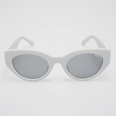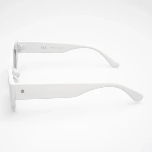 FRAME: White. LENS: Smoke. 100% UV Protection. Category 2