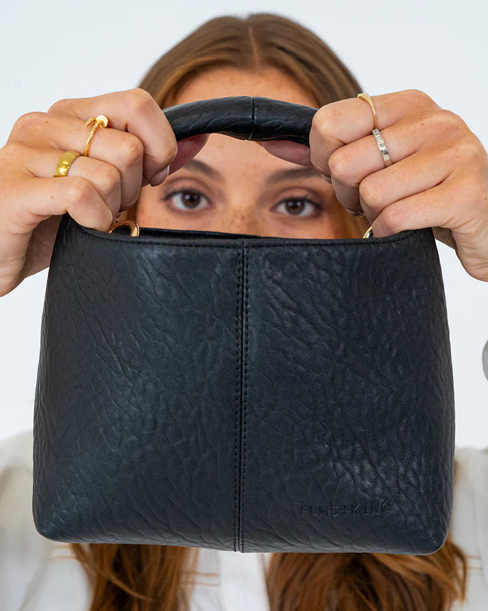 The Elms+King Linton Crossbody is made from premium 100% recycled polyurethane and features a blue & white gingham lining. It's a compact bag that features an adjustable and removable crossbody strap. The centre compartment is secured with a covered mag closure.