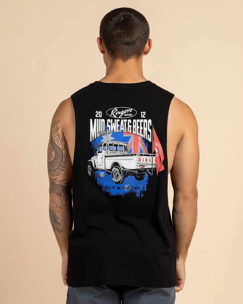 The Mud Sweat and Beers Men's Muscle Tank is the hot weather staple every bloke needs this summer.