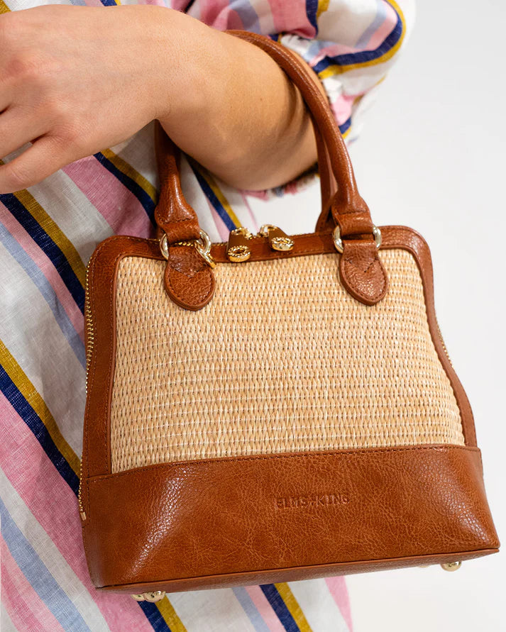 The Fairfax Top Grip is made from premium polyurethane and woven poly straw. The handbag offers style and flexibility, featuring classic top grip handles and a removable crossbody strap. The double head, deep gusset zipper opens to reveal our signature blue & white gingham lining, a zipper pocket with PU trim and an open top slip pocket.
