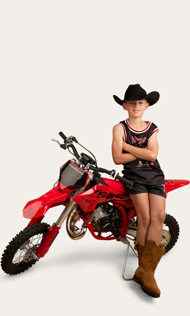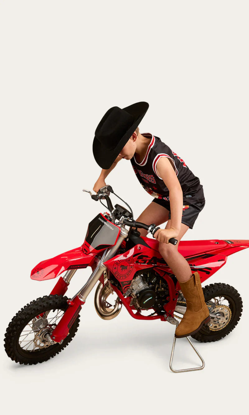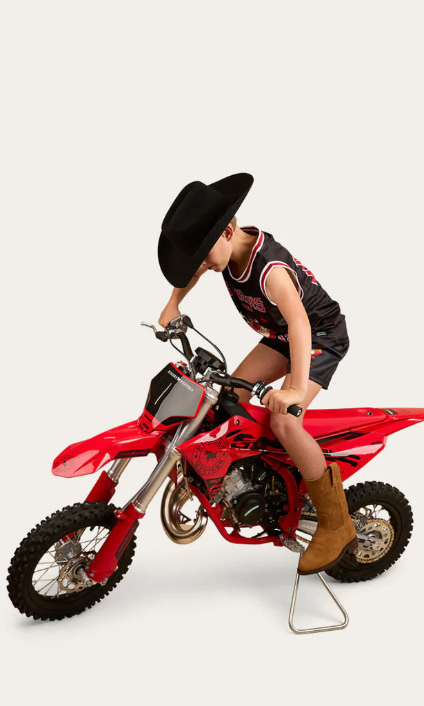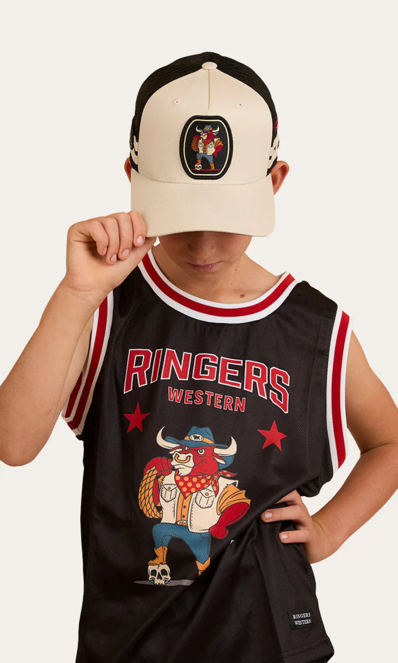 Introducing the Do No Harm Kids Tank, created from a light and breathable stretch mesh fabric, this loose fitting tank will keep you cool and dry all summer long. The front features a large Ringers Western graphic print, whilst number 12 is printed on the back, a proud nod to the year the Ringers Western brand was established.