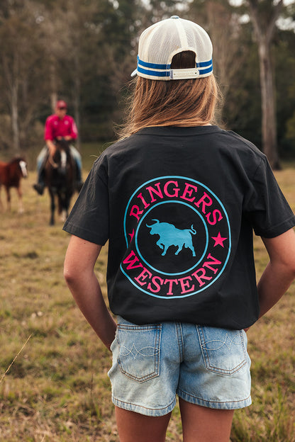 This classic fitting style tee is made from 100% cotton which is a natural fibre, known for its softness, breathability and durability. Never hear your little ones complain again with this soft-feel tee. The signature crest is printed on both the front and back of this garment, carrying the pride and dedication of Ringers Western to the products throughout this range. The length of the Signature Bull Classic fit t-shirt falls along the hip line as they are designed to be worn tucked in or left untucked.
